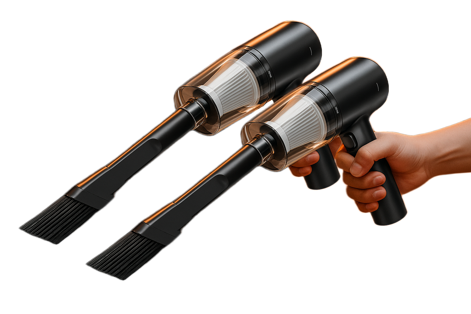 W zestawie znajdują się dwie funkcjonalne końcówki: szczotkowa oraz szczelinowa, dzięki którym dopasujesz narzędzie do różnych powierzchni i typów zabrudzeń.