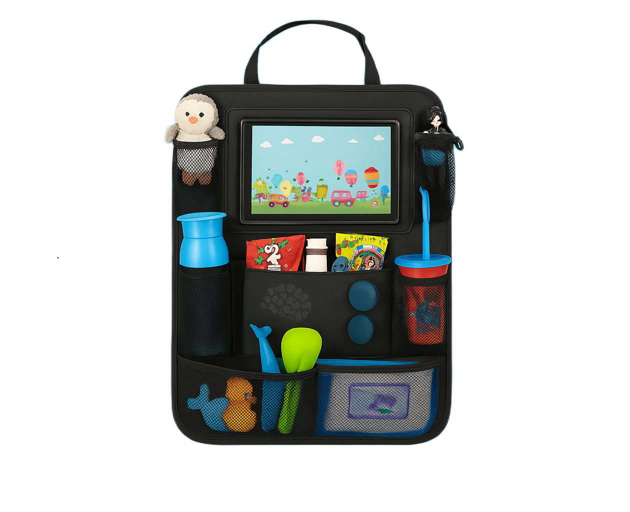 Organizer pozwala utrzymać porządek w samochodzie i sprawia, że każda podróż staje się wygodniejsza. Wszystkie niezbędne drobiazgi dla dziecka są zawsze w zasięgu ręki.